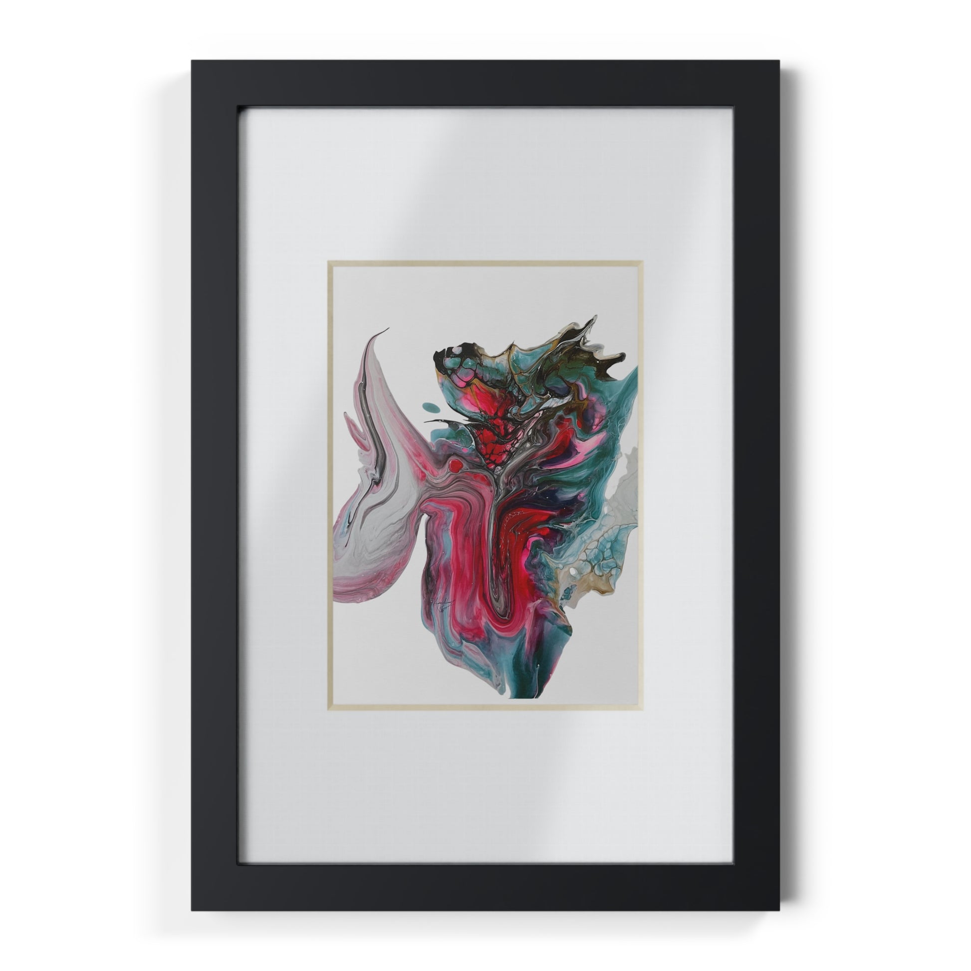Indigo warrior unique fluid art Prints with a black Perspex frame compliment any interior style with elegance. Amber Licardy fluid art painting is printed on a white inner matboard keeps everything looking sleek and polished. This painting is named Flower love bubble ❤️🔥 .: Materials: black MDF frame and backing, clear Perspex insert cover .: 200 gsm, FSC-certified paper .: White inner matboard