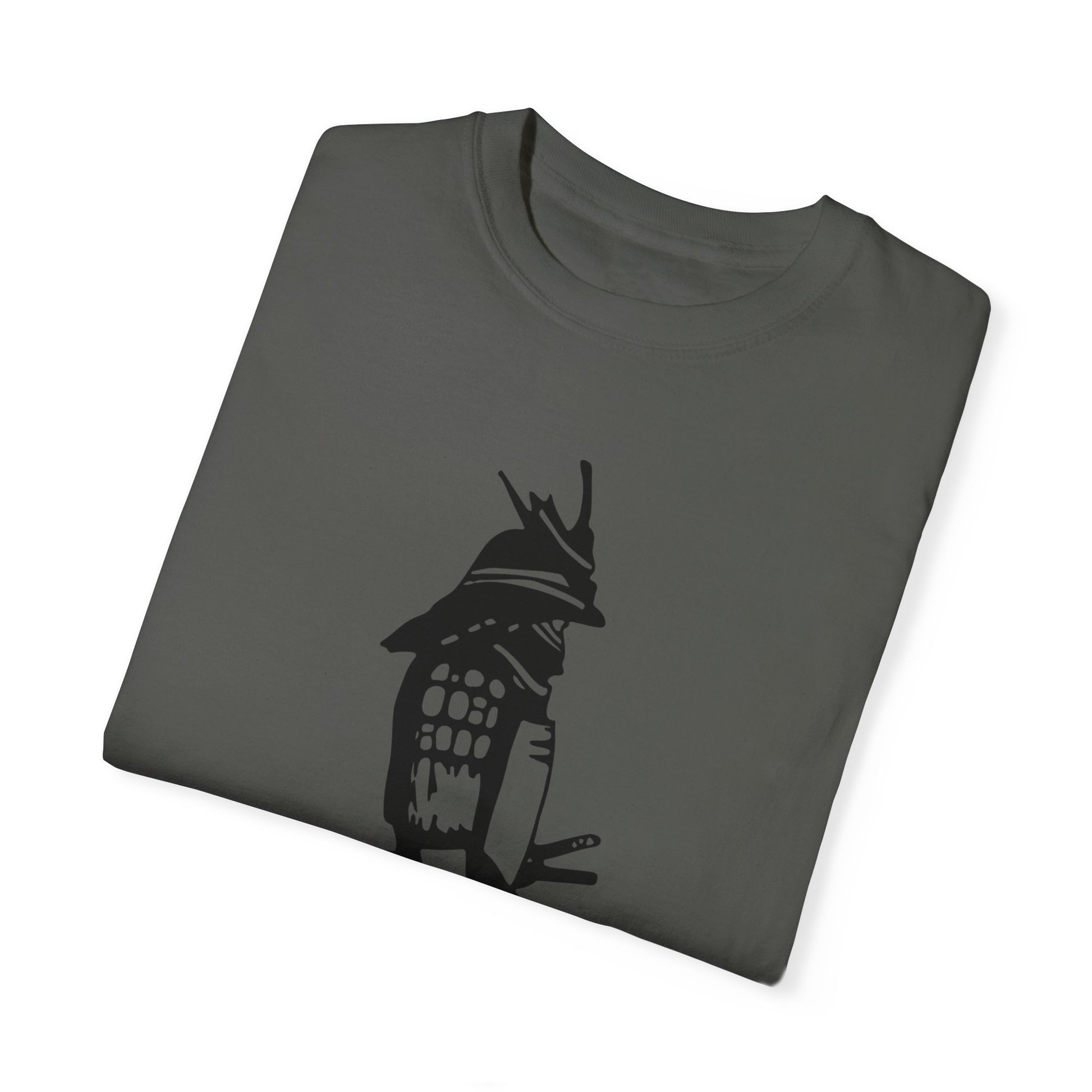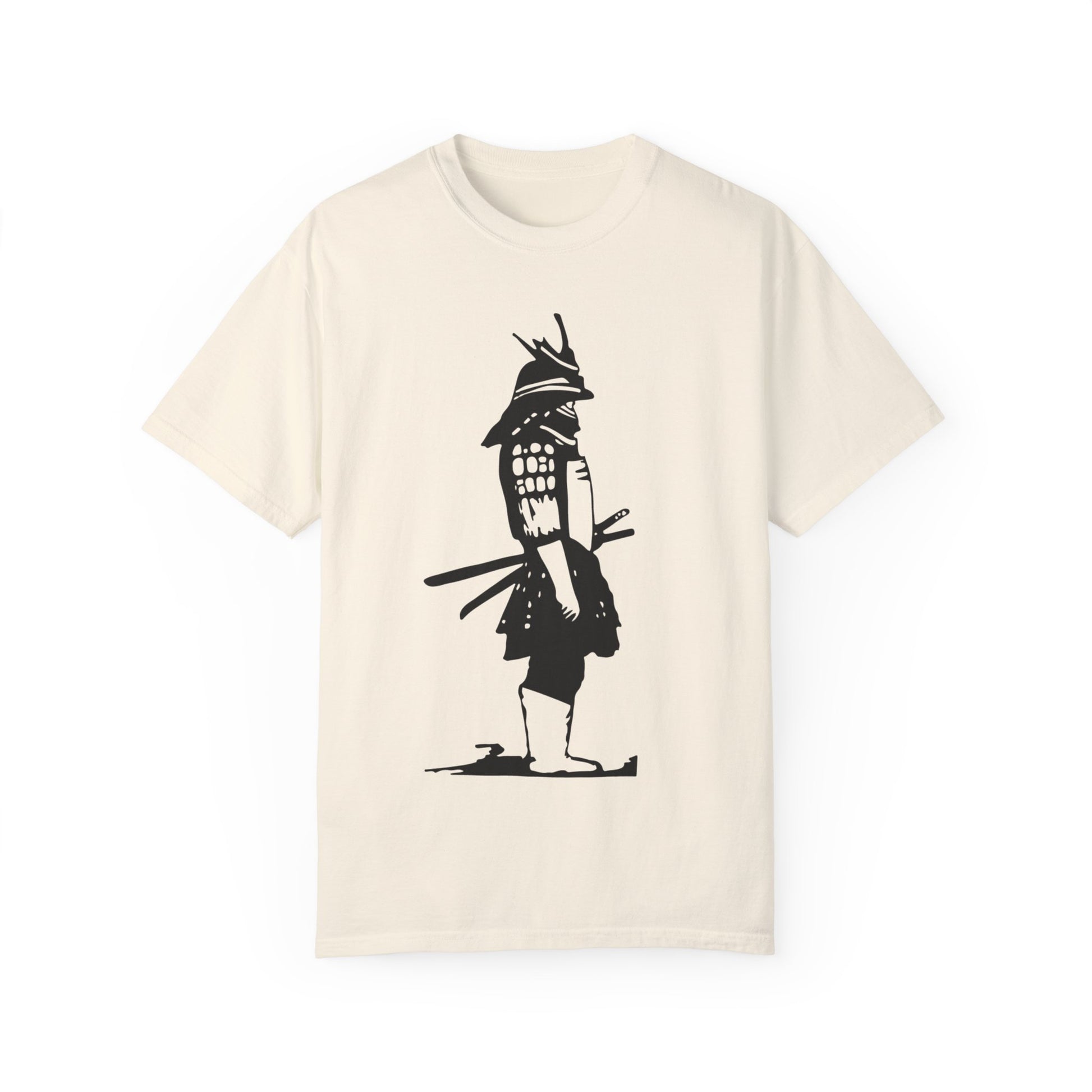 Indigo warrior Samurai print t-shirt, giving off a bold and unique vibe. Perfect for those who appreciate Japanese culture and history. Ideal for casual wear or as a statement piece for special occasions like Comic-Con or Halloween.